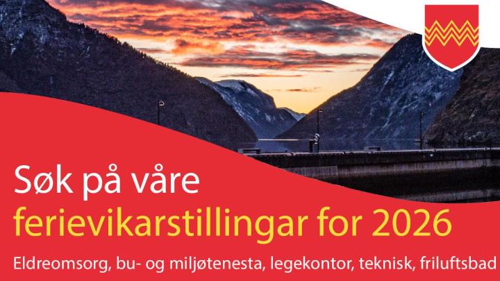 Det er idag lagt ut fleire ferievikar stillingar i Årdal kommune.Søknadsfrist: 1. mars 2026