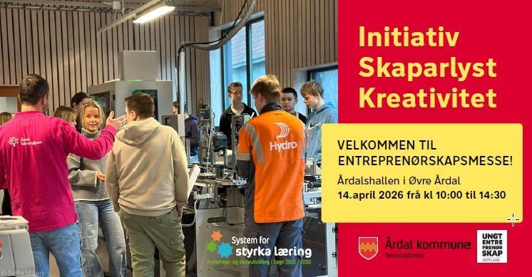 Årets entreprenørskapsmesse blir i Årdal 14. april 2026!
