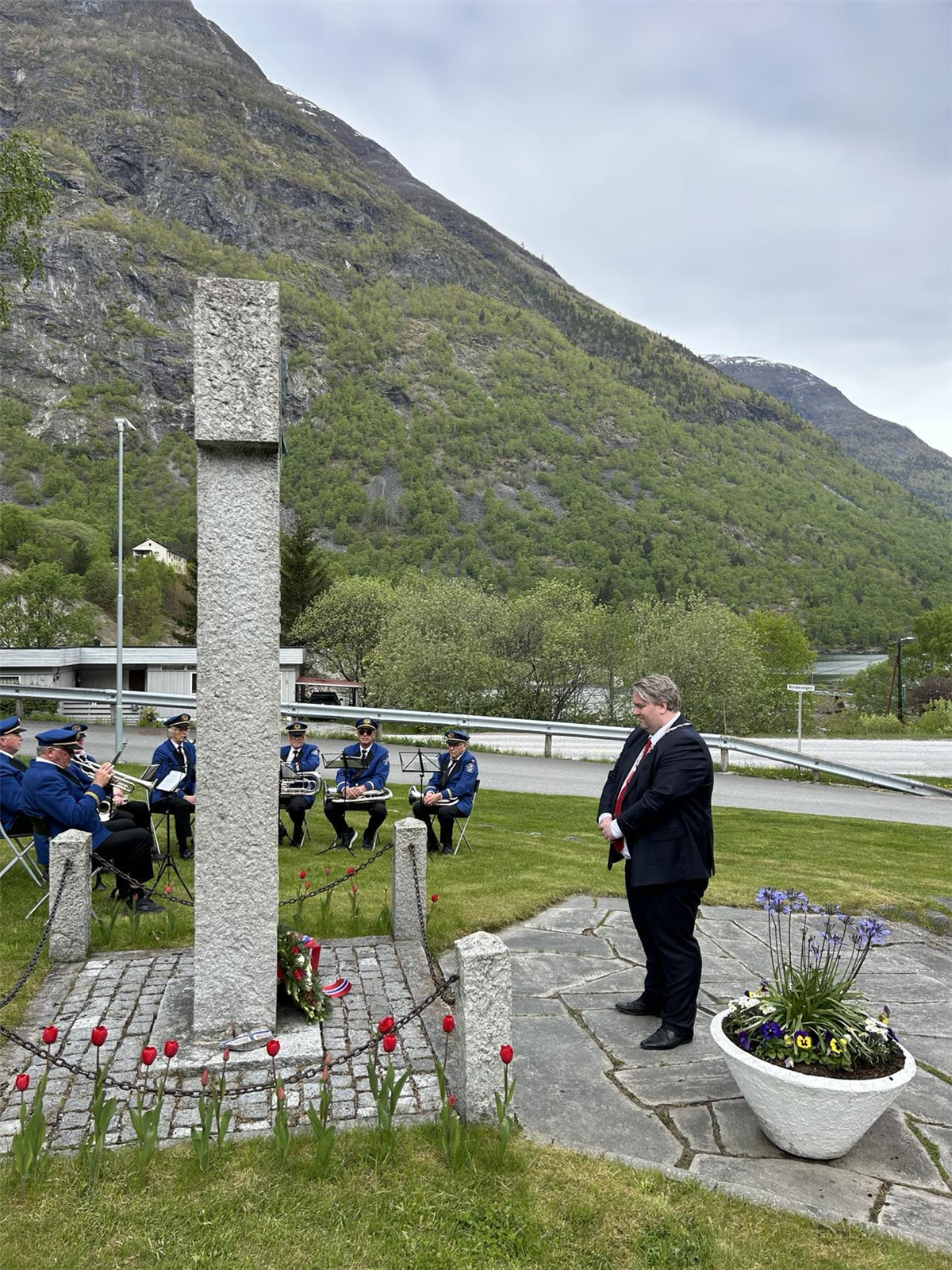 Årdalstangen musikklag spelte på markeringa ved Thorvald Lægreid sitt meinnesmerke