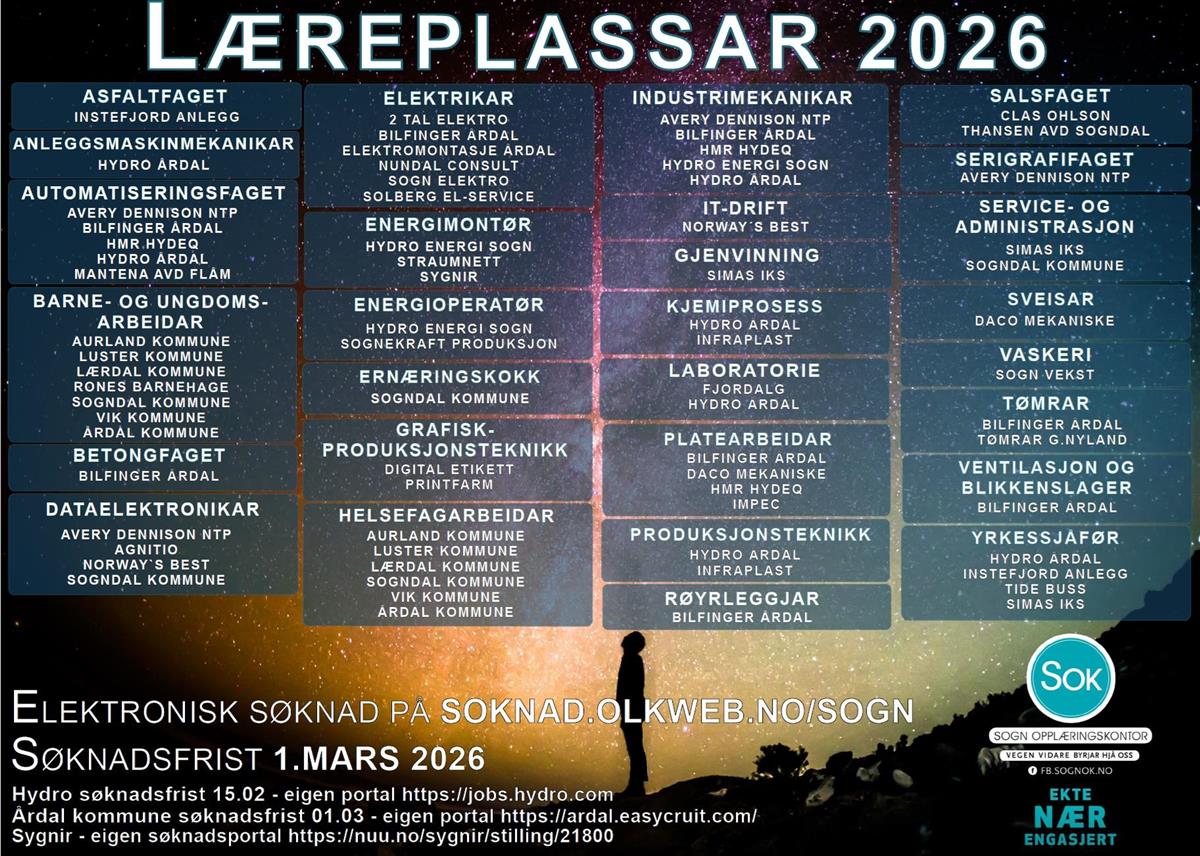 Her finn du og andre læreplassar i Sogn gjennom Sogn opplæringskontor:
