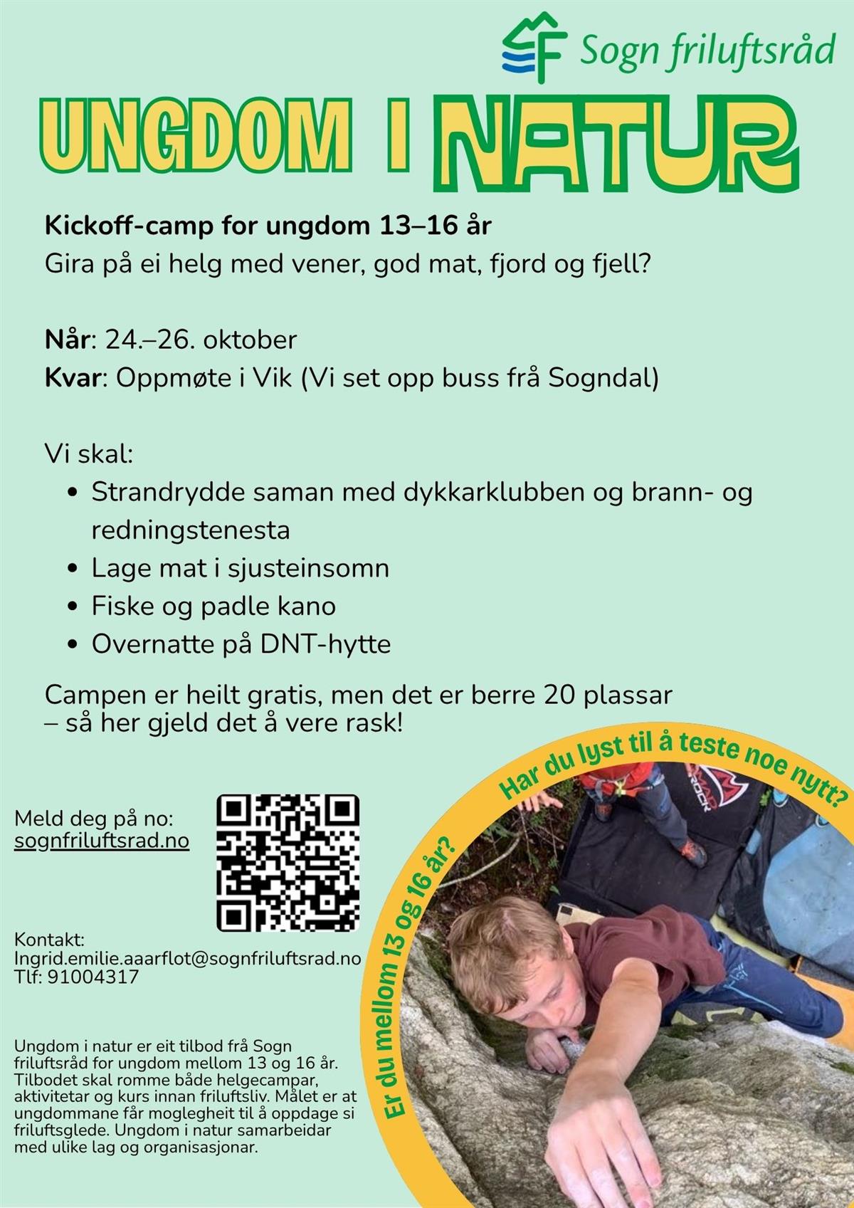 Sogn Friluftsråd inviterer ungdom mellom 13 og 16 år til å bli med på Ungdom i natur – eit nytt tilbod for ungdom i Aurland, Årdal, Lærdal, Luster, Vik og Sogndal.